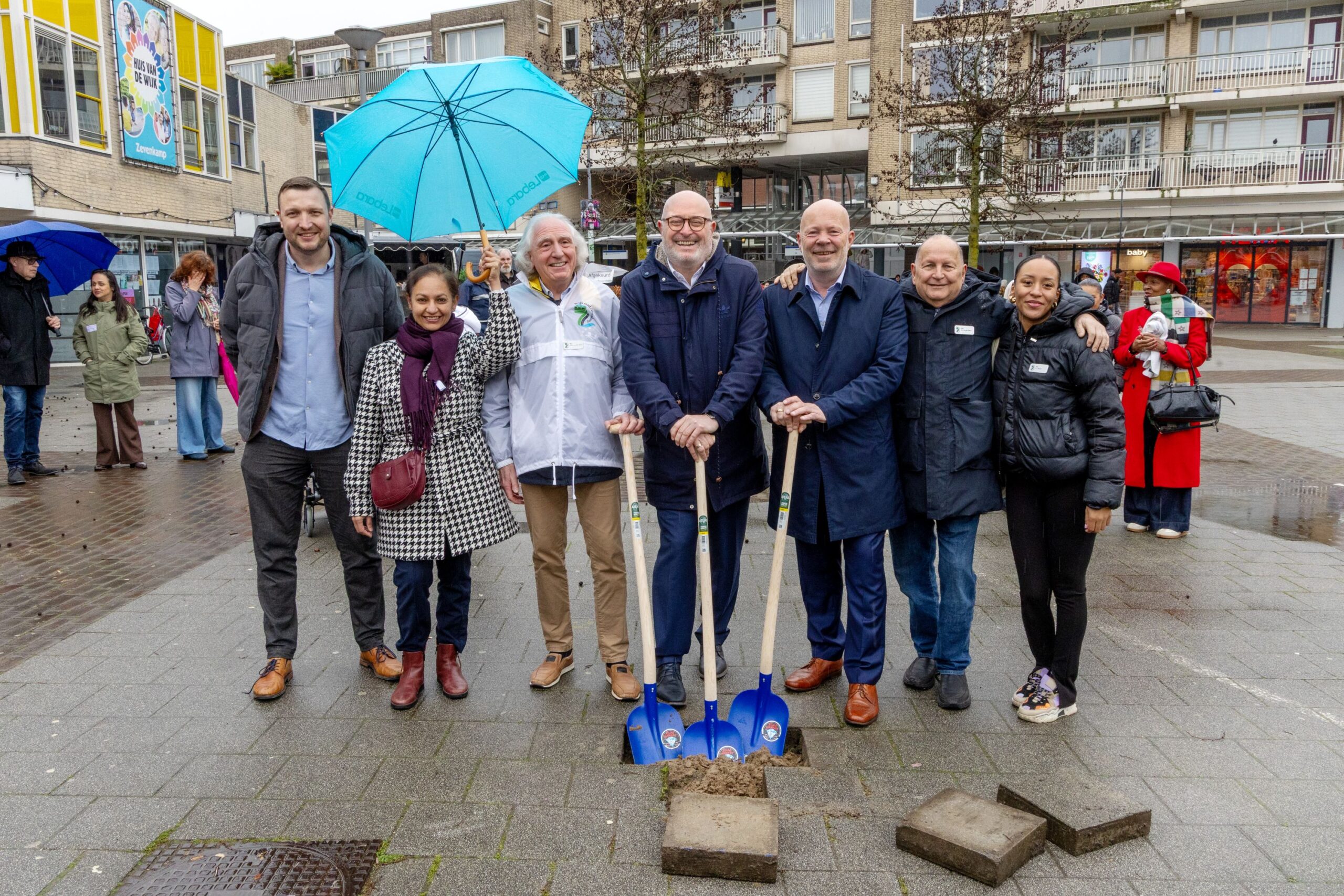 De gemeente start met de herinrichting van het Ambachtsplein in Zevenkamp. Het winkelcentrum vormt al meer dan 40 jaar het hart van de wijk. Na de werkzaamheden wordt het plein groener en aantrekkelijker: een fijne plek om te winkelen, te verblijven en elkaar te ontmoeten. Vandaag gaven wethouders Pascal Lansink-Bastemeijer (o.a. Buitenruimte), Robert Simons (o.a. Economie en Wijken) en de wijkraad Zevenkamp het officiële startsein voor de werkzaamheden. Aanstaande maandag begint aannemer GKB Realisatie B.V. met de herinrichting van het plein.